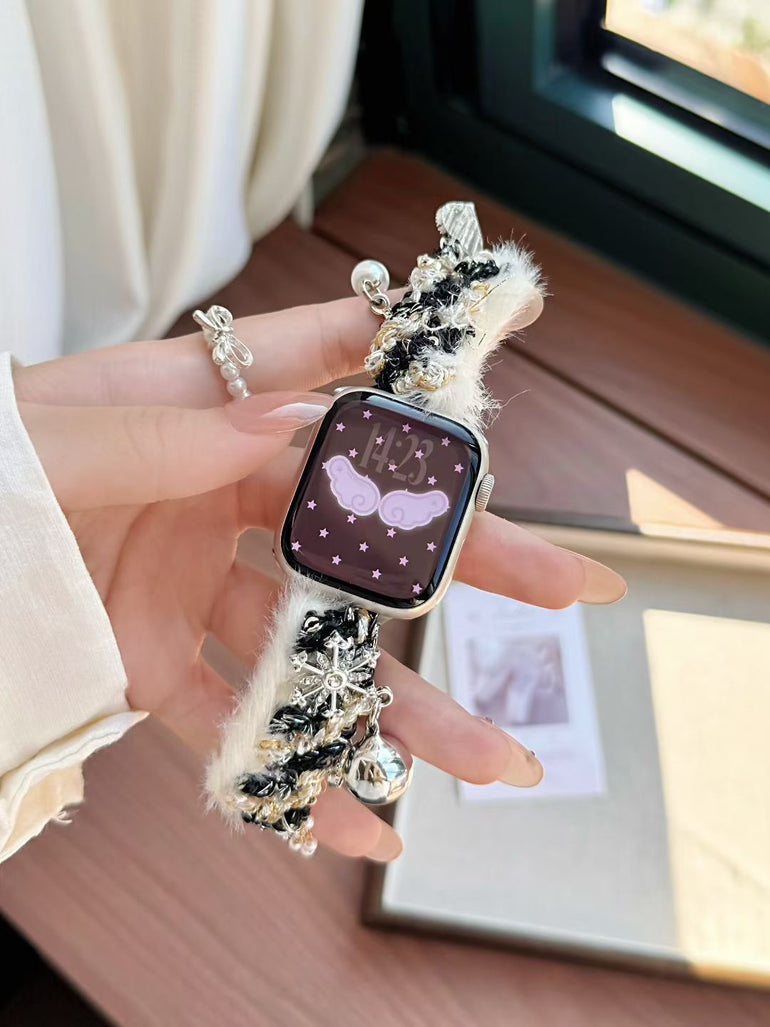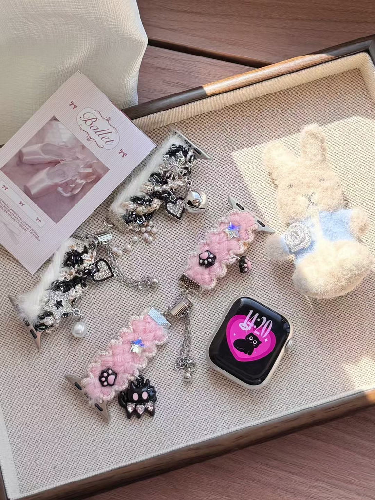 Add a soft, dreamy touch to your Apple Watch with the Fluffy Ballet Charm Apple Watch Strap. Designed with plush fuzzy textures and delicate dangling charms, this strap turns your watch into a statement accessory with a cute and elegant aesthetic.