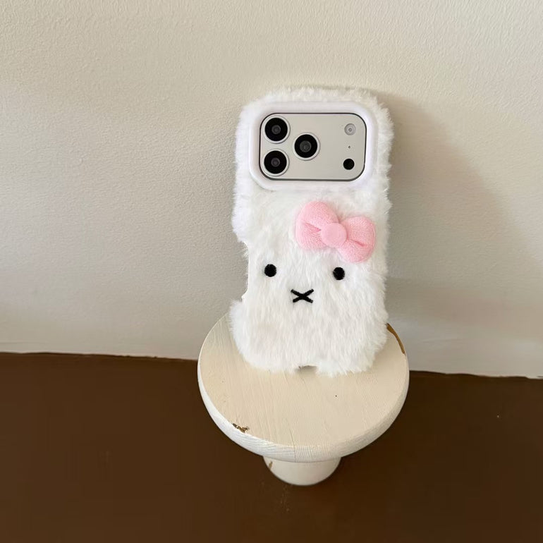 Add ultimate cute vibes to your phone with this fluffy bunny iPhone case, designed with a super-soft plush finish and an adorable bunny face. Comes with a matching mini plush charm, making it a perfect blend of comfort and kawaii style.