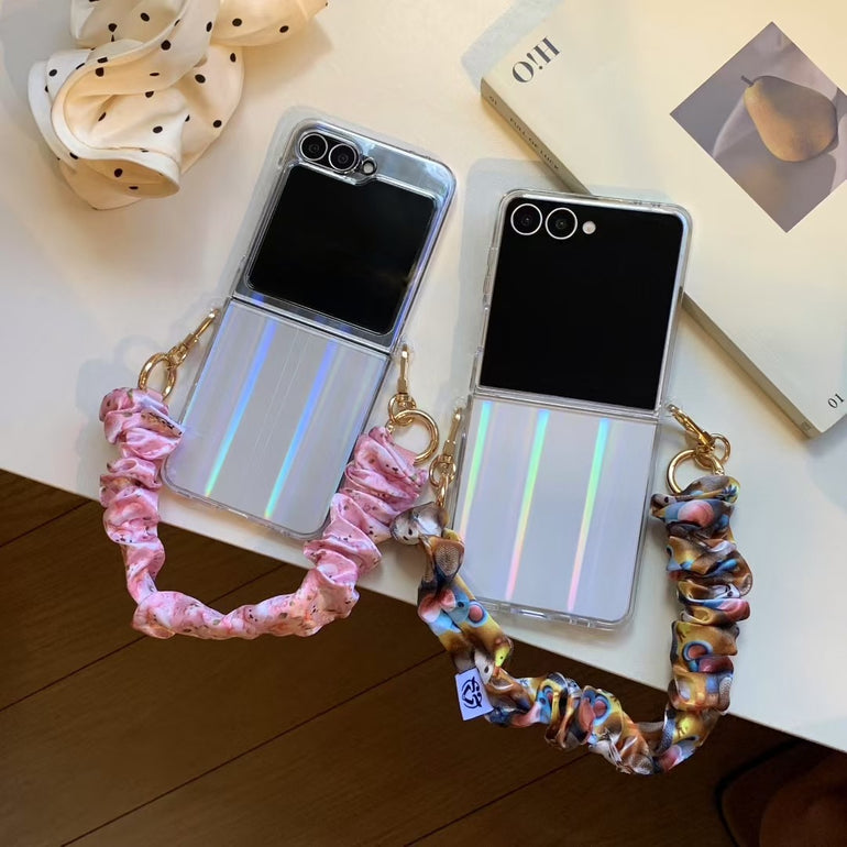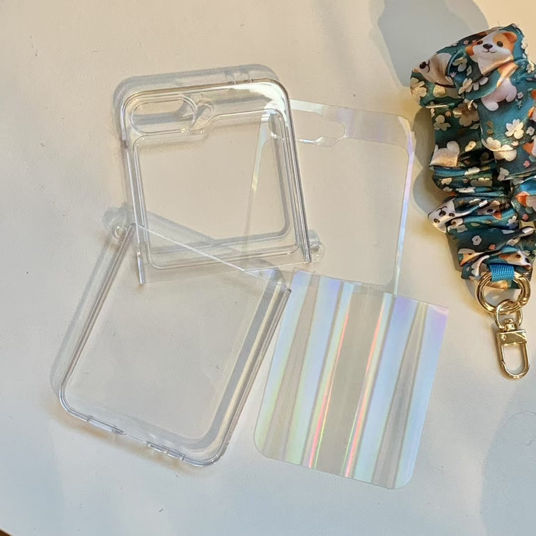 Holographic Clear Samsung Z Flip Case with Scrunchie Strap