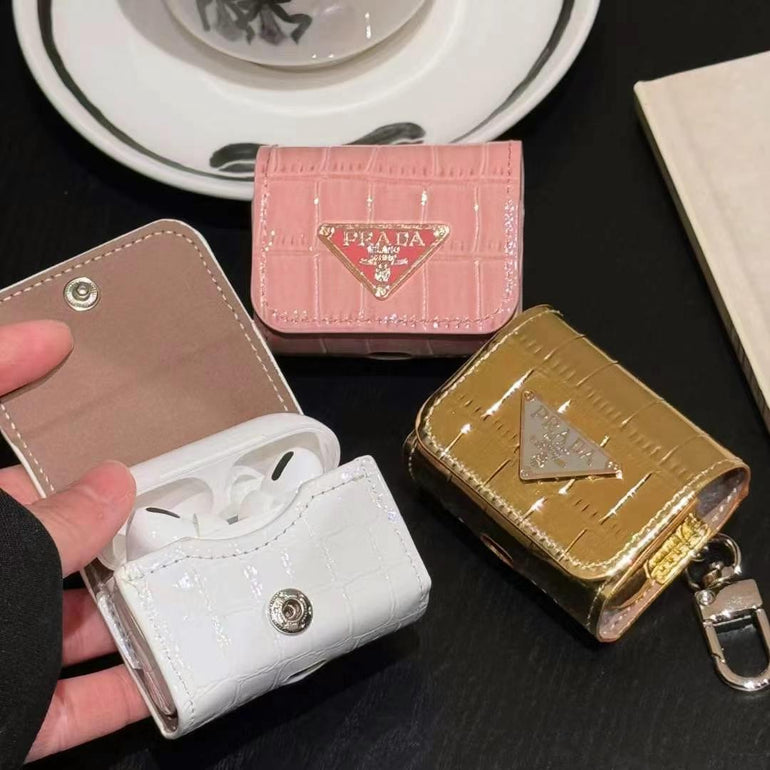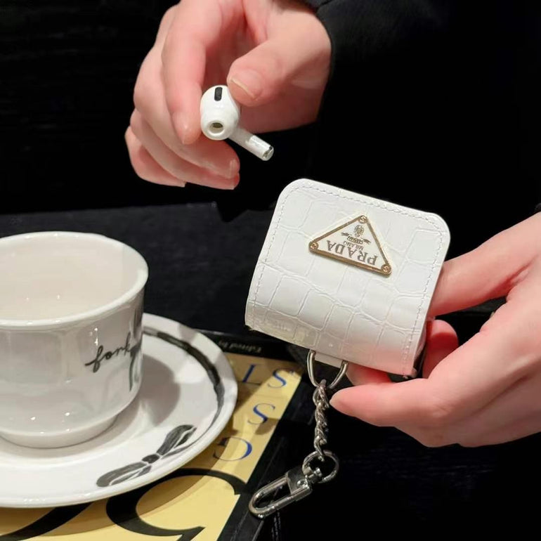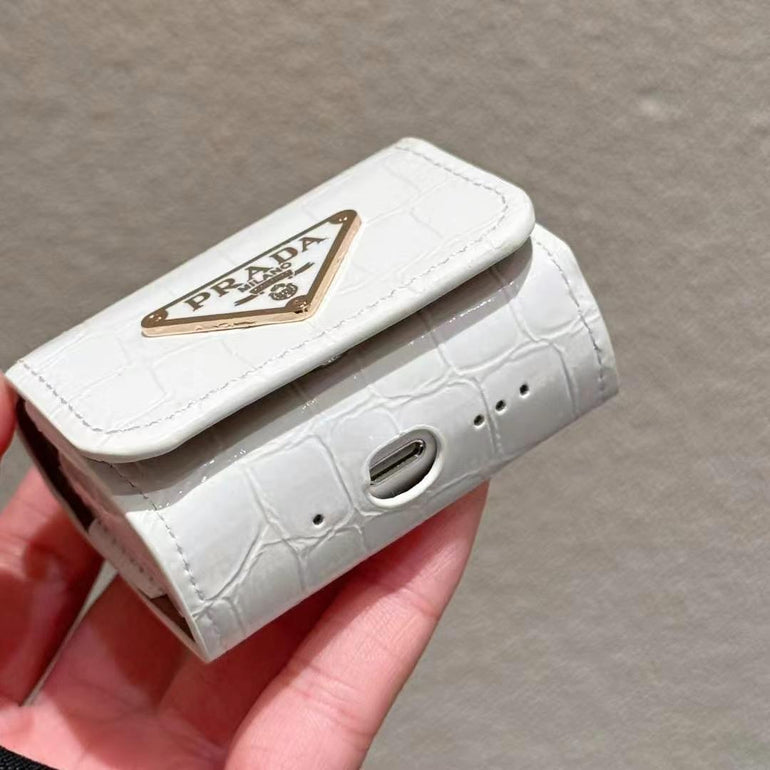 Luxury Branded Croc Leather Case For Airpod With Charm