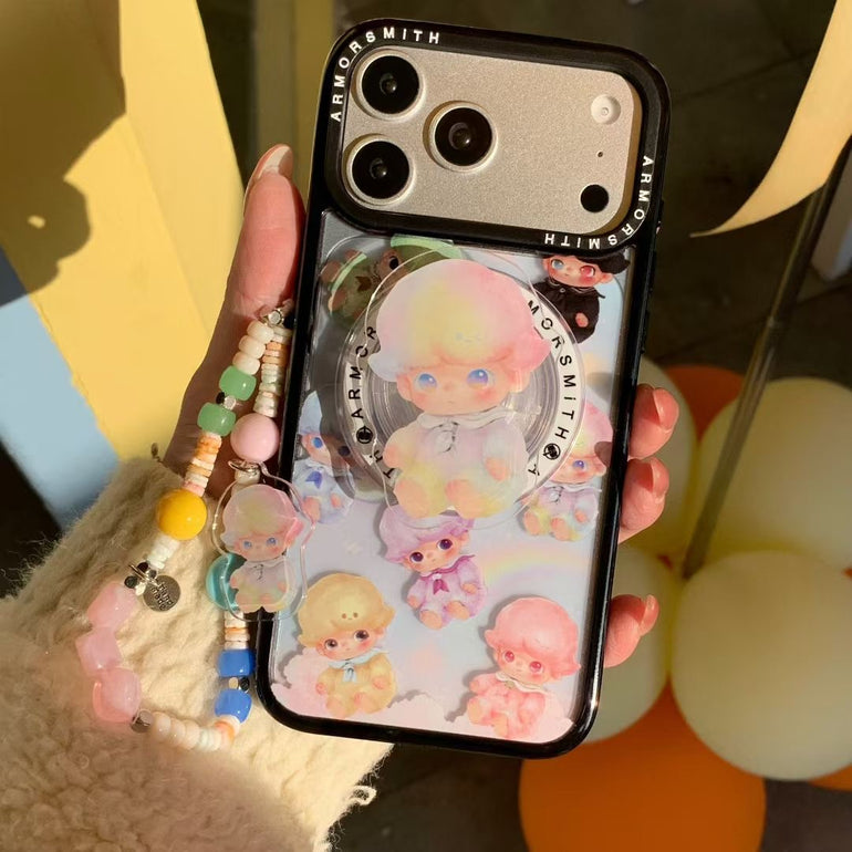 Add a soft pastel touch to your phone with this Pastel Baby Doll iPhone Case, designed with adorable baby doll artwork and a dreamy aesthetic. The case comes with a built-in MagSafe holder for easy grip and magnetic compatibility, along with a cute beaded charm that completes the look.
