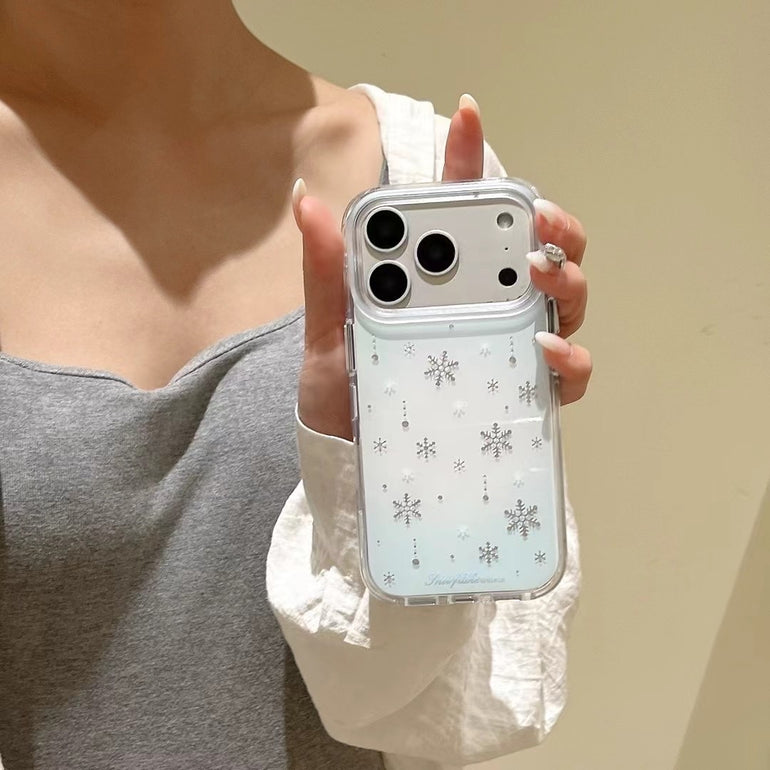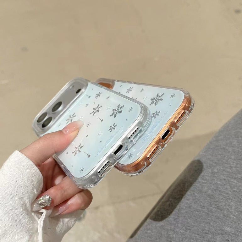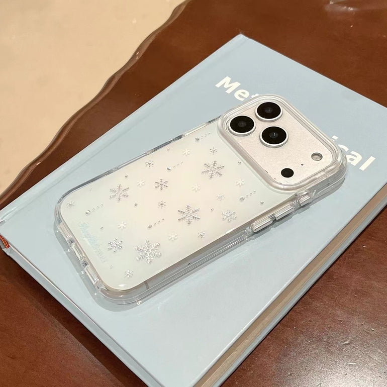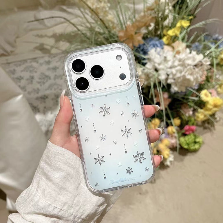 Add a wintery, elegant touch to your phone with this Snowflake iPhone Cover, featuring delicate crystal snowflakes and a soft frosted finish. Comes with a beautifully detailed winter-themed charm strap including snowflakes, beads, and a cute snowman charm—perfect for both style and convenience.